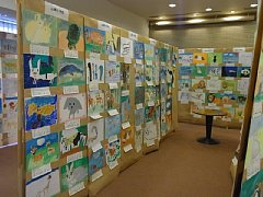 | 同じフロアーでは動物絵画展も行われました。 鎌倉・逗子・葉山の小学校の生徒さんたちによるもので、なんと1,300枚以上もの動物絵画が展示されました。 |